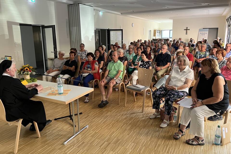 Die Benediktinerin glaubt aber an die Zukunft der katholischen Kirche. Das betonte sie mehrfach bei ihrem Impulsvortrag beim katholischen Bildungswerk in Reilingen am Freitag, 14. Juli, im Wendelinushaus. Hierfür hatten sich etwa 70 Interessierte angemeldet. Alle wollten die Reformerin im Ordensgewand sehen und ihr zuhören.