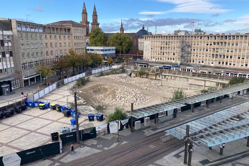 Ein Loch in bester Lage: Die Baustelle der "Tortenschachtel" ist ein Symbol für das Ende der einst visionären Architektur im Stadtbild.