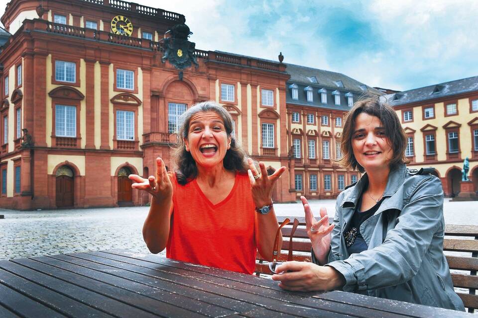 Die Französinnen Caroline Mary-Franssen (l.) und Virginie Jouhaud-Neutard verbringen den heutigen Nationalfeiertag in ihrem Heimatland in der Quadratestadt. Foto: vaf