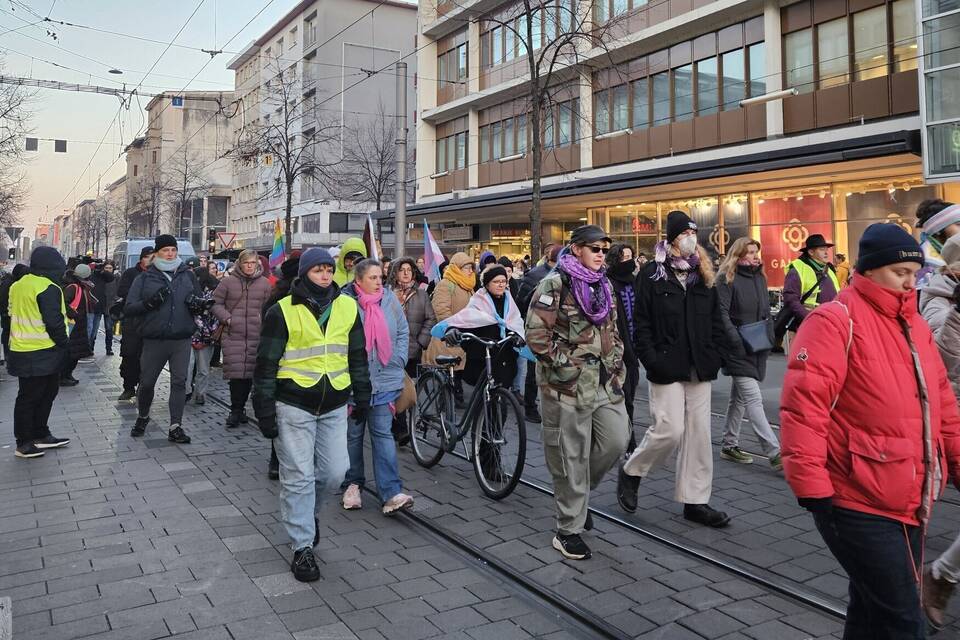 Vom Marktplatz ging es zunächst zum Paradeplatz. Dort wurden unter anderem Namen der Opfer vorgelesen. Die meisten sind Transfrauen und stammen aus Afrika oder Lateinamerika.