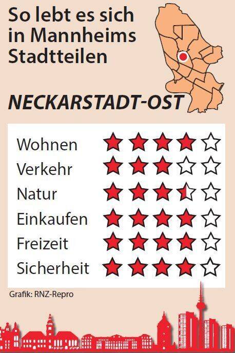 Roswitha Henz-Best kennt die schönen und weniger schönen Ecken der Neckarstadt-Ost in- und auswendig. Die Rechtsanwältin ist hier geboren und aufgewachsen. Und auch, wenn es sie ab und an fortzog, kam sie doch immer wieder zurück. "Man wohnt im Grünen, wir haben den Herzogenriedpark und das Neckarufer, die Innenstadt ist nicht weit weg, aber der Stadtteil selbst hat auch viel zu bieten", sagt die Bezirksbeiratssprecherin der Christdemokraten.