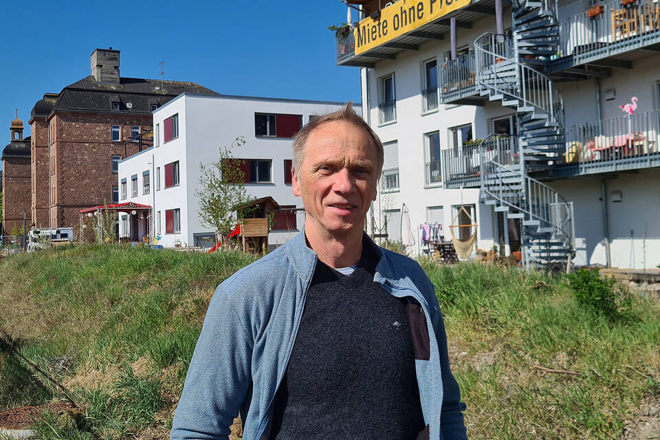 "Es war eine Art Labor für die Stadt, wie Konversionen mit Wohnprojekten neu belebt werden können. Im Grunde sind wir hier die ersten zivilen Bewohner", sagt Günter Bergmann, der 2016 als einer der Ersten auf Turley einzog. In eines von drei gemeinschaftlichen Wohnprojekten: den "Umbau2", ein innovatives Mieterprojekt, das energieeffizientes und bezahlbares Wohnen ermöglicht. "Wir sind sozusagen unsere eigenen Mieter", sagt Bergmann. Denn das viergeschossige Holz-Hybrid-Gebäude ist nicht nur das "größte Holzhaus Mannheims", sondern auch in seiner Finanzierung etwas Besonderes – und Teil des Miethäuser-Syndikats. Das bedeutet, der aufgenommene Kredit wird über die Miete abgedeckt, dafür sind die Bewohner an das Wohnprojekt gebunden. "Die Kaltmiete beträgt 8,50 Euro", verrät Bergmann. Auf der anderen Straßenseite liege sie schon bei rund 14 Euro.
