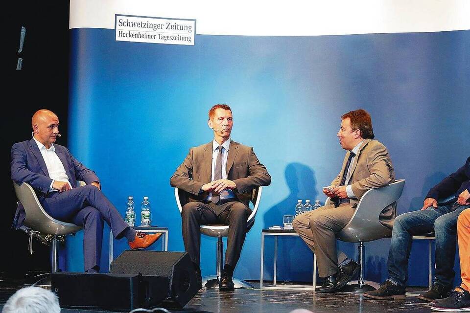 Jeder der vier Kandidaten - René Pöltl (49), Reinhard Koepke (48), Haydar Sahin (51) und Dimitrij Walter (34) - hatte zehn Minuten Zeit, um sich den Besuchern vorzustellen. Noch einmal fünf Minuten weniger als bei der erst kürzlich erfolgten öffentlichen Vorstellung im Haus der SPD Schwetzingen. Danach moderierte Gruler eine Fragerunde, zu der die Kandidaten bequem nebeneinander Platz nehmen durften. Und schließlich waren die Besucher der Veranstaltung an der Reihe und durften Fragen an die vier Teilnehmer an der Oberbürgermeisterwahl stellen.