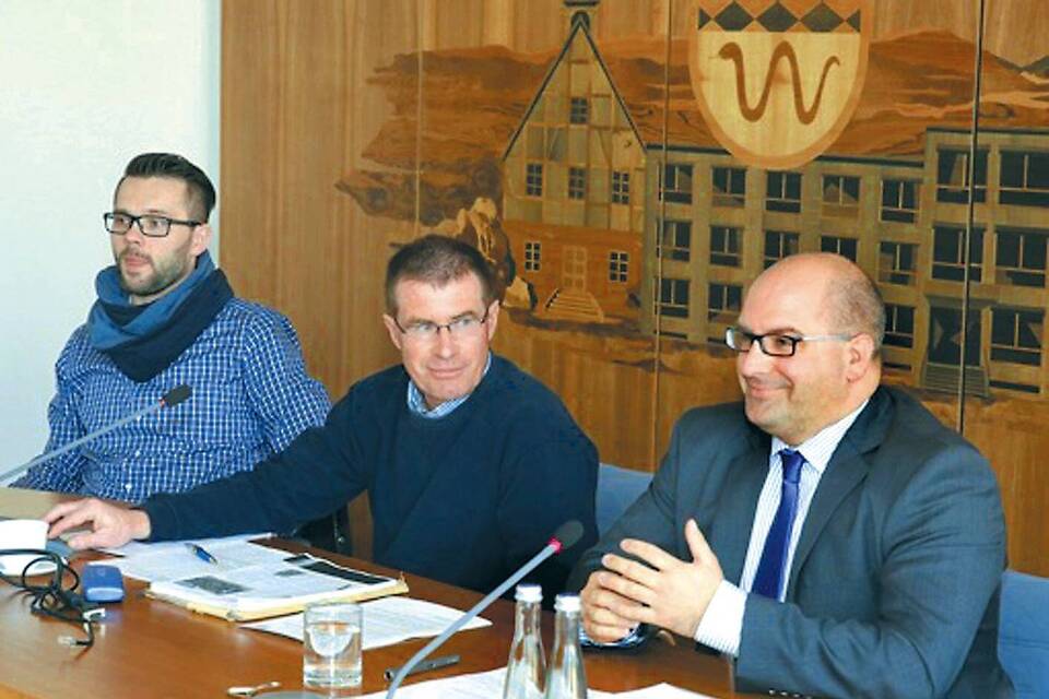 Informierten über die Flüchtlinge: Peter Wojcek und Stefan Becker vom Rhein-Neckar-Kreis sowie Bürgermeister Jens Geiß. Foto: len