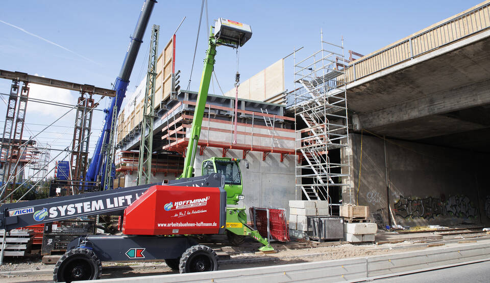 Entscheidend für den Verkehr von Weinheim und Viernheim her in die Mannheimer Innenstadt ist die BBC-Brücke. Diese ist marode und muss ersetzt werden. Für die Zeit der Bauarbeiten gibt es eine Behelfsbrücke, die jetzt errichtet wurde. Foto: Kreutzer