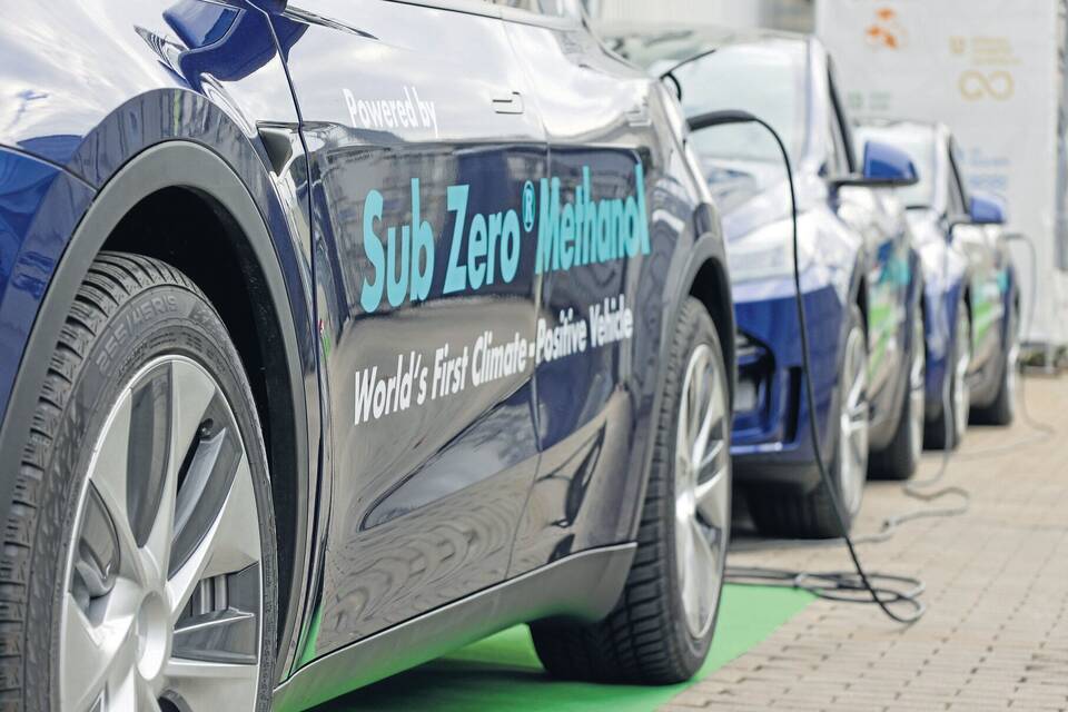 Grünes Methanol als Kraftstoff: Die Aktion bewarb sich als angeblich "erste klimapositive Autofahrt der Menschheitsgeschichte".