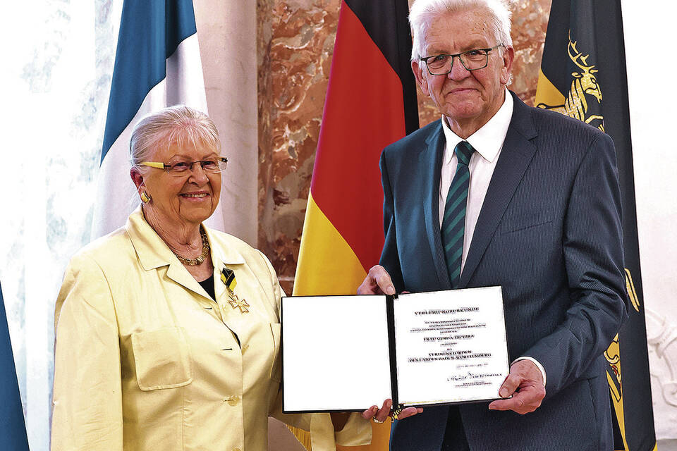"Heute zeichnen Orden nicht Macht, sondern Gemeinwesen aus", merkte Kretschmann mit Blick auf den Rittersaal als Verleihungsort an. Früher Treffpunkt elitärerer Gesellschaften, dürfe er hier heute in Sport, Politik, Kultur, Kunst, Wissenschaft und Gesellschaft Engagierte auszeichnen. "Beruflich und ehrenamtlich", so der Ministerpräsident.
