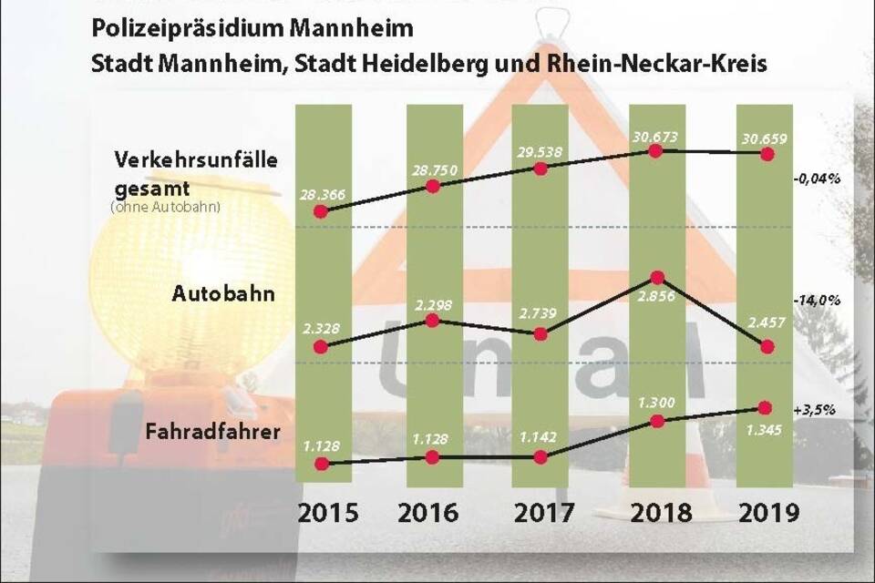 Rhein-Neckar. (gol/alb) Traurige Nachrichten hat das Polizeipräsidium am Donnerstag bei der Vorstellung der Unfallstatistik für 2019 mitgeteilt. Mit insgesamt 28 Verkehrstoten – 20 davon im Rhein-Neckar-Kreis – verzeichnet die Mega-Behörde sogar einen Fünf-Jahres-Höchststand. Das Gros der Verstorbenen sind Rad- und Motorradfahrer sowie Fußgänger. Also "schwächere" Verkehrsteilnehmer, was Polizeipräsident Andreas Stenger laut einer Mitteilung "besonders betroffen" macht. Er will sich gemeinsam mit den Verkehrspolizisten "mit aller Macht" für einen "deutlichen Gegentrend" einsetzen.