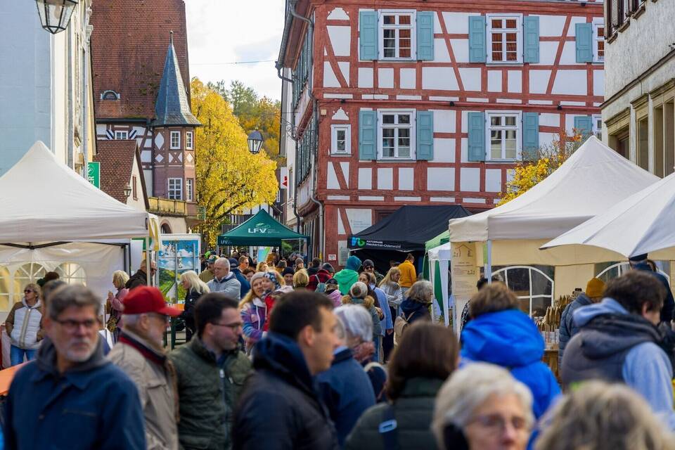 Adelsheim. (kr) Mit einem letzten großen Naturparkmarkt verabschiedete sich der Naturpark Neckartal-Odenwald in Adelsheim aus der Saison. 36 Aussteller verwandelten den Bereich entlang der Marktstraße in ein Paradies für Genießer, Handwerksliebhaber und Naturfreunde. Zwischen duftenden Backwaren, frisch gepressten Säften und liebevoll gedrechselten Holzschalen zog es zahlreiche Besucher von