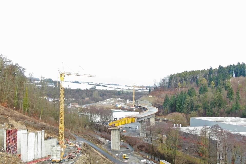 Der letzte Abschnitt der Ortsumgehung über den Damberg und durch das Gebiet "Roter Rain" sei topografisch und geologisch schwierig. Auch hier sollen Stützkonstruktionen errichtet werden, mit voraussichtlich zehn bis 15 Meter langen Anker.