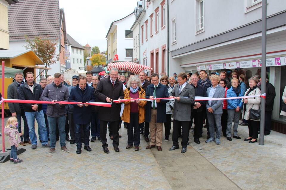 Die Friedrichstraße in Osterburken sei mehr als nur eine Straße, sie sei das Rückgrat im Stadtgefüge, wurde jetzt bei der offiziellen Übergabe von Festrednern betont. Entsprechend groß war die Freude bei den Offiziellen und der Bevölkerung, dass man jetzt gemeinsam den gelungenen Abschluss der Ausbaumaßnahme begehen konnte. Foto: Helmut Frodl