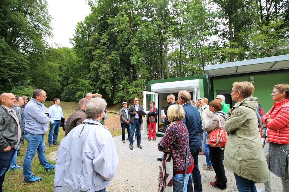 Eine der Stationen war der neue Waldkindergarten (im Hintergrund die als Wetterschutz dienenden Container). Foto: Rüdiger Busch