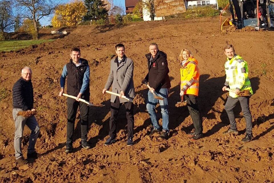 Symbolischer Spatenstich in Allfeld: Hier sollen auch ein Spielplatz und ein Supermarkt entstehen.