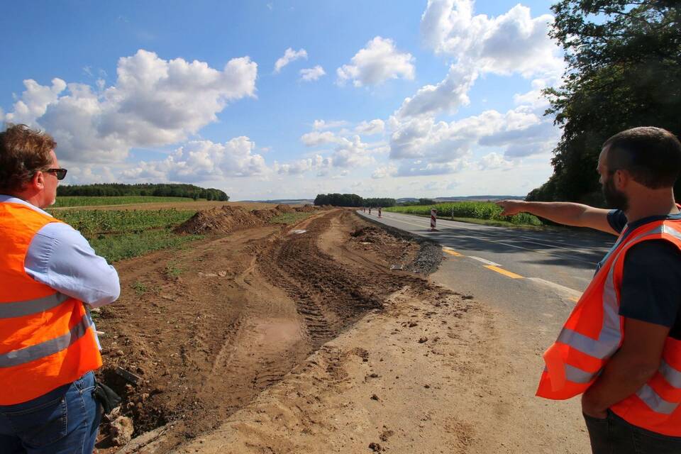 Dadurch, dass eine einvernehmliche Lösung gefunden wurde, sei es auch möglich gewesen, eine temporäre Baustraße anzulegen. Und die ermöglicht es den Baufirmen, die Arbeiten so durchzuführen, dass der Verkehr möglichst störungsfrei fließen kann. Größtenteils kommt die Maßnahme nämlich ohne Straßensperrungen aus. Lediglich in der vergangenen Woche gab es an knapp zwei Tagen eine Ampelschaltung. Ansonsten fließt der Verkehr auf zwei deutlich verengten Fahrstreifen mit 30 Kilometern pro Stunde an der Baustelle vorbei. Die Geschwindigkeitsreduzierung ist notwendig, um die Sicherheit der Arbeiter zu gewährleisten. "Wir drehen an allen Stellschrauben, um so wenig Einschränkungen für den Verkehr wie nötig und gleichzeitig so viel Sicherheit wie möglich auf der Baustelle zu erreichen", betont Baur.