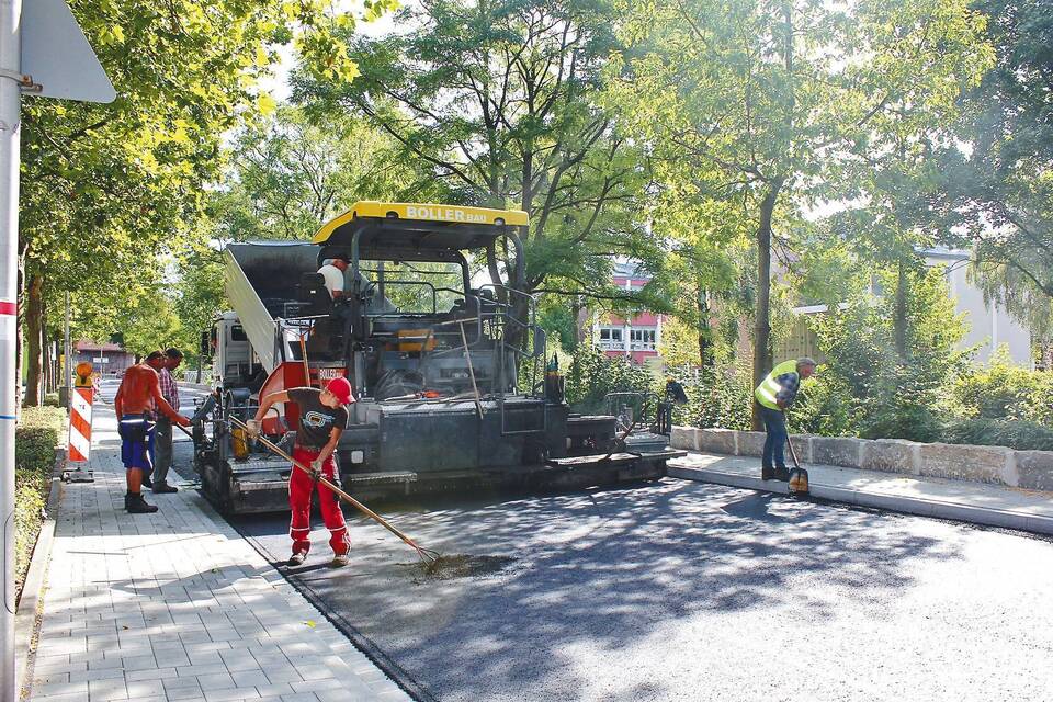 Die Arbeiten in der Schüttstraße laufen in die Zielgerade ein: Die Asphaltschicht wird aufgetragen. Foto: T. Radan