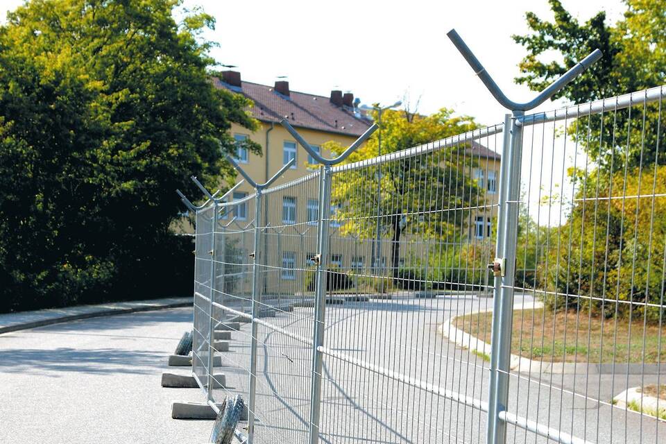 Der Zaun steht seit gestern: Damit werden die Flüchtlingsgebäude (hinten) von der übrigen Kaserne abgetrennt. Foto: Rüdiger Busch