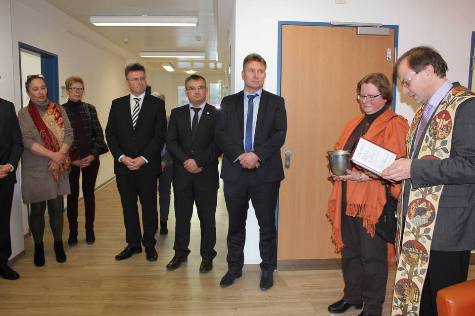 Die helle und freundliche Palliativstation, in der sechs Patienten betreut werden können, wurde von Pfarrerin Irmtraud Fischer und Dekan Johannes Balbach gesegnet. Foto: Tanja Radan