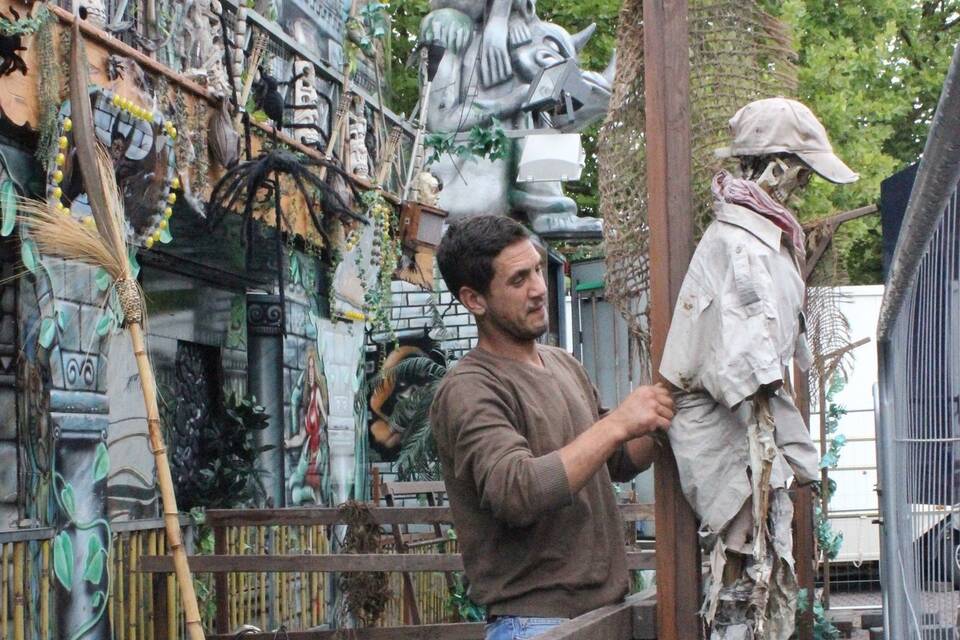 Um die Besucher zu "gruseln", wird die Geisterbahn präpariert. Foto: Lea Kirchgeßner