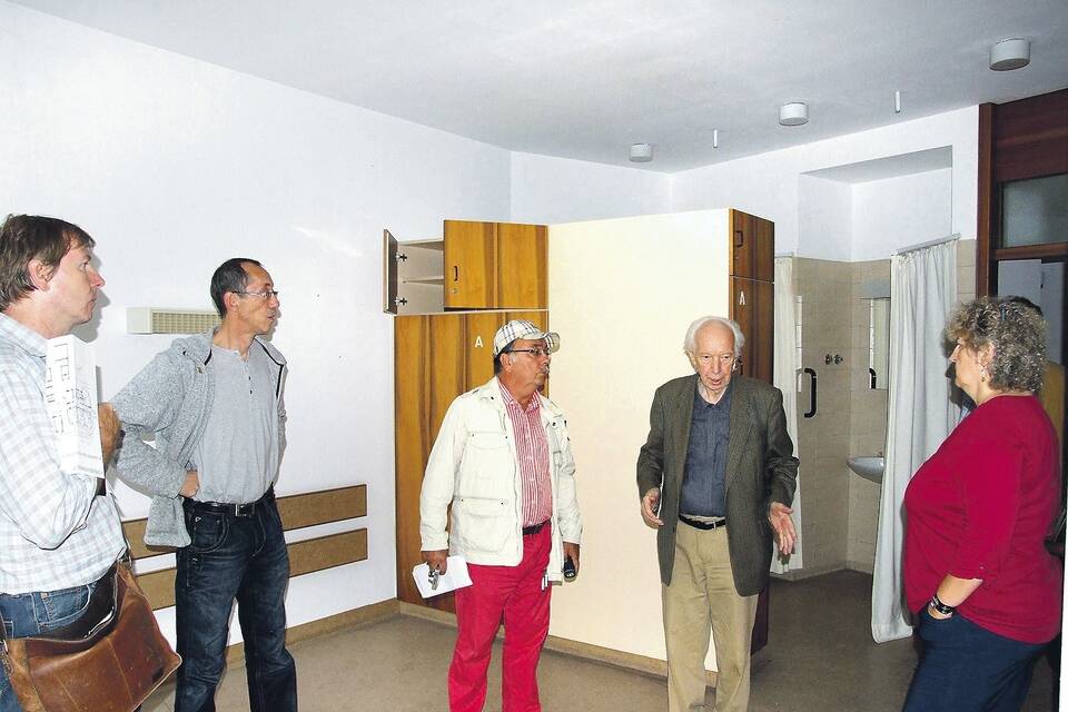 Im Dr.-Schmeißer-Stift sahen sich bereits 2012 (v.l.) Andreas Diehm, Heinrich Schäfer, der inzwischen verstorbene Gustav Rumstadt und Ute Böhm auf der Suche nach Sanierungsmöglichkeiten um. Der heute geplante Abriss des Tagespflege-Trakts zugunsten von Parkplätzen ist nur ein Kritikpunkt Schäfers; er sagt, dies bedeute letztlich das Aus für das Vorhaben. Archivfoto: Christofer Menges