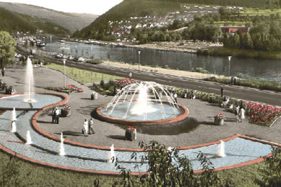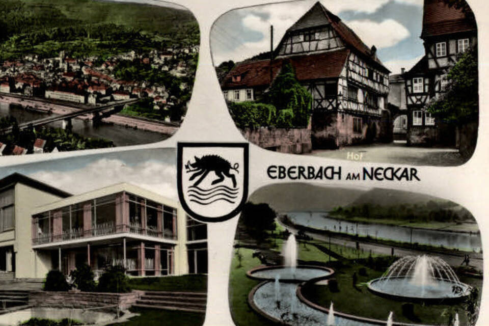 Bürgermeister Schmeißer machte aus Eberbach ab 1956 eine Kurstadt. Heilwasser wurde vom Brauereigrundstück auf Leitungen ins Kurhaus geliefert. Dort konnte man sich das Nass aus einem Trinkbrunnen im Nierentisch-Stil abfüllen. Weitere Stränge liefen zur Bussemerstraße ins damalige städtische Badewannenhaus. Die Heilanzeigen der Eberbacher Quelle waren rheumatische Erkrankungen, wenn man sich damit in der Badewanne guttat, und chronische Erkrankungen der Atemwege und Störungen des Magen-Darm-Traktes, wenn man sich den einen oder anderen salzigen Schluck gönnte. Eberbach trat Anfang 1961 dem Deutschen Bäderverband bei. Bade-, Trink-, Inhalations- und Mundkuren wurden verordnet. Am Itterberg gab es einen Terrainkurweg. Und an der Neckarseite wurde von Kurhaus bis Berufsschule ein schmaler Kurpark angelegt, abgeschlossen durch die heute noch laufenden Wasserspiele. Neben der Quelle beim Rosenbräu wurde 1964 sogar eine zweite Schüttung im Karlstal erschlossen, fast mit gleicher Zusammensetzung wie beim Bohrloch Nummer 1. Jetzt glaubte man endgültig an den Eberbacher Aufschwung. Als höchstes Prädikat bekam Eberbach 1967 die Auszeichnung "Luftkurort mit Heilquellen-Kurbetrieb". Schmeißer hatte den "Luftkurort" schon 1958 beantragt. Da gab es 326 Betten in Gaststätten und Hotels, 140 in Privatquartieren. Die Luft im Odenwald war ohnehin gut. Und an heißen Sommertagen fuhren Sprengwagen mit Wassertanks durch die Stadt, die auch den letzten Staub auf den Straßen niedersprühten.