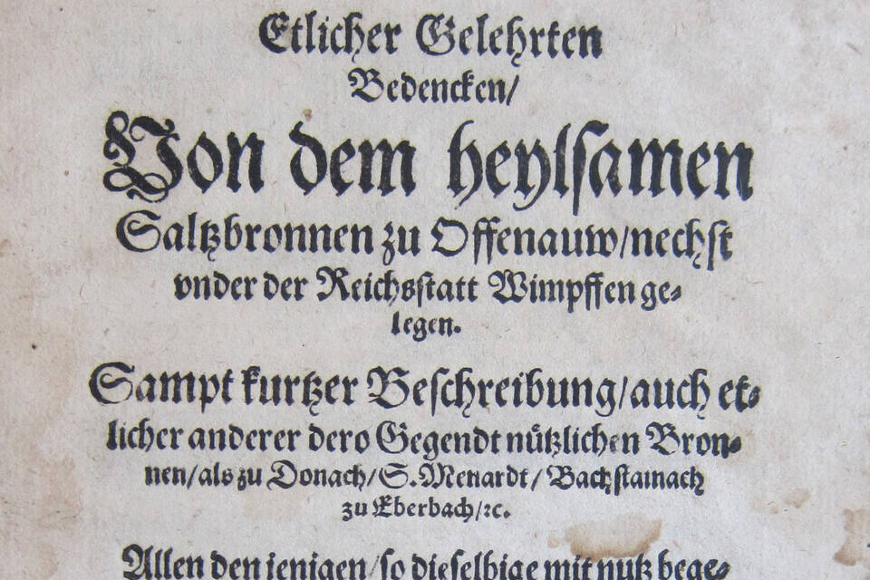 Denn ein Blick ins Stadtarchiv zeigt eine alte originale Schrift: Medicus Georgius Marius berichtete bereits 1584 von der heilenden Wirkung der Eberbacher Quelle. 1572 hat der Basler Gelehrte Leonhard Thurnheysser zum Thurn schon über den Eberbacher Heilbrunnen geschrieben.