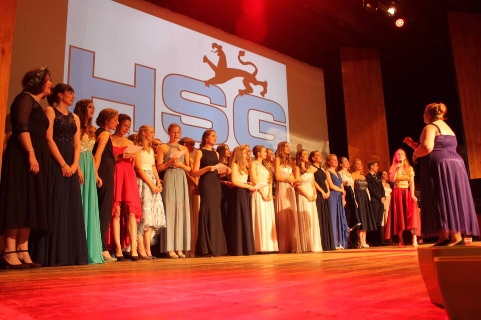 "Wir haben nach einer kräftezehrenden Wanderung einen hohen Berg erklommen und nun endlich die Fahne, auf der Spitze des Berges, in den Boden gerammt", berichten die Abiturienten Christoph Reichert und Marie-Luise Quiring. Sie blicken auf die Schulzeit und die gesammelten Erfahrungen zurück. Nun eröffnen sich neue Wege und es gilt neue Gipfel zu erklimmen. "Es ist jetzt trotzdem unsere Aufgabe, herauszufinden, wie wir unserer persönlichen Verantwortung in der Welt gerecht werden; wie wir einer Stagnation entgegenwirken und stets aufmerksam gegenüber unseren Mitmenschen bleiben können." Die Erfahrungen, das Gelernte und die Erinnerungen bleiben laut Reichert und Quiring ständige Begleiter. Die Zeugnisse übergeben die Tutoren; die Preise (siehe Artikel l.) Katzner und ihr Stellvertreter Dr. Matthias Hauck. Musikalisch umrahmt wurde die Veranstaltung mit "Pomp and Circumstance" vom Orchester unter Leitung von Jutta Gewahl und mit Dirigentin Jonna Böing. Außerdem präsentierten der Abichor 2017 und die Neigungskursband (Leitung Böing) "We are the world", der Neigungskurs Musik "Te Deum" und zum Abschluss gab’s "Mama said" vom Abichor mit Dirigentin Milena Deschner.