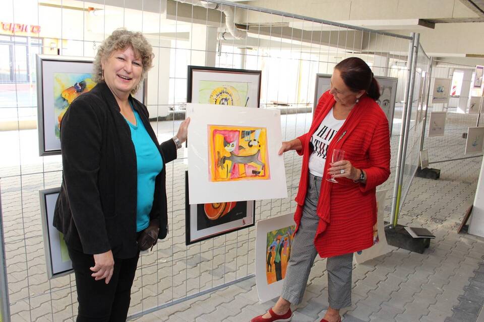 Unter den ausstellenden Künstlerinnen der WieArt ist auch Ute Böhm aus Eberbach (l.), hier mit Vorsitzender Elfriede Breitwieser.