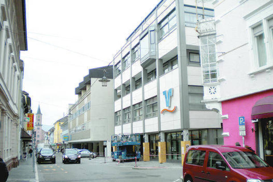 Eberbach. Die Bahnhofstraße West zeigt sich mit dem erneuerten Bankhaus von der freundlichen Seite.