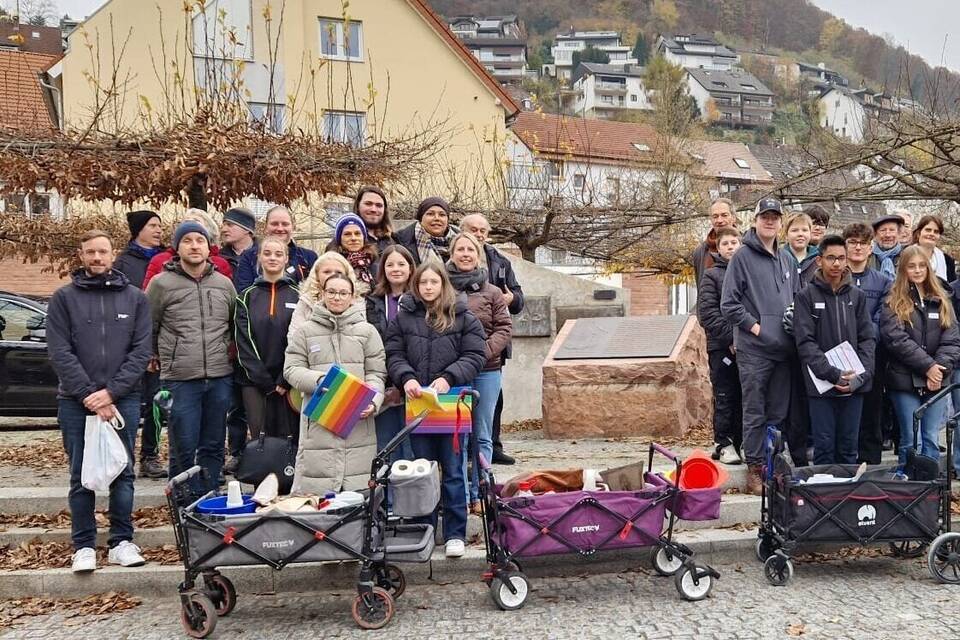 Eberbach. "Toll, dass ihr das macht" rief ein kräftiger Mann der kleinen Gruppe quer über die Straße zu, die gerade auf dem Bürgersteig kniete. Mit Wasser, Putzmittel und Schwamm putzten und polierten Jugendliche in vier Gruppen am vergangenen Samstag die Eberbacher Stolpersteine.