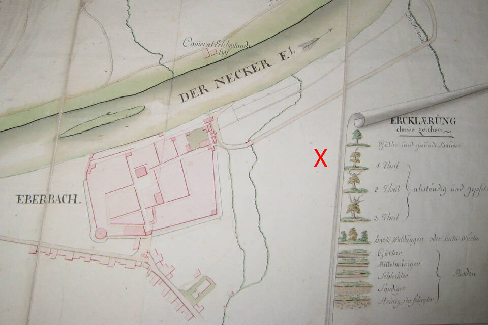 So sieht das freie Gelände des früheren Nägelsees (Kreuz) auf einer Eberbach-Karte von 1787 aus. Repro: Rainer Hofmeyer