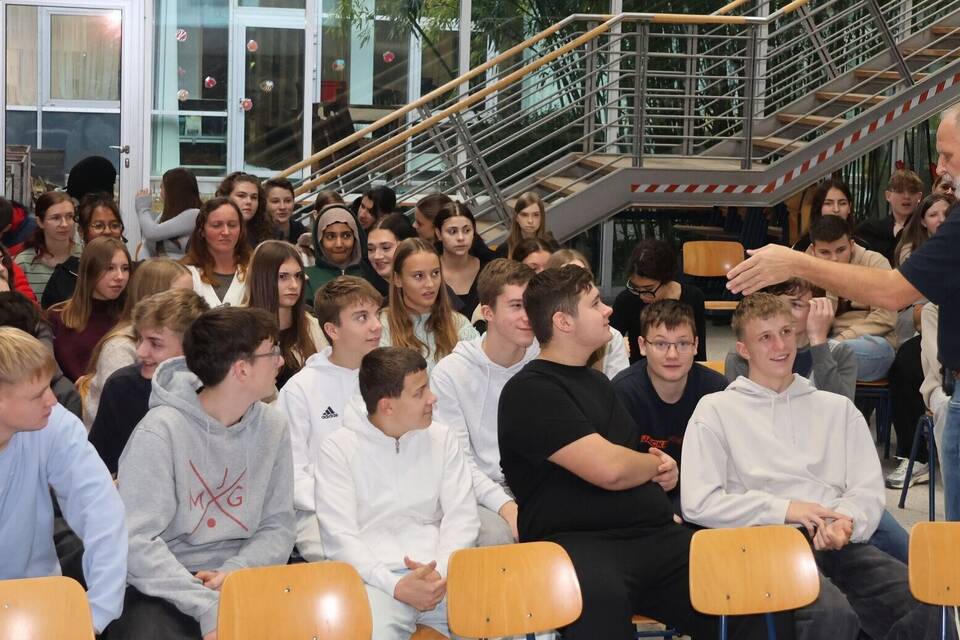 Dr. Harald Genzwürker referierte im Buchener Schulzentrum über Energydrinks und ihre Folgen für den Körper von Jugendlichen.