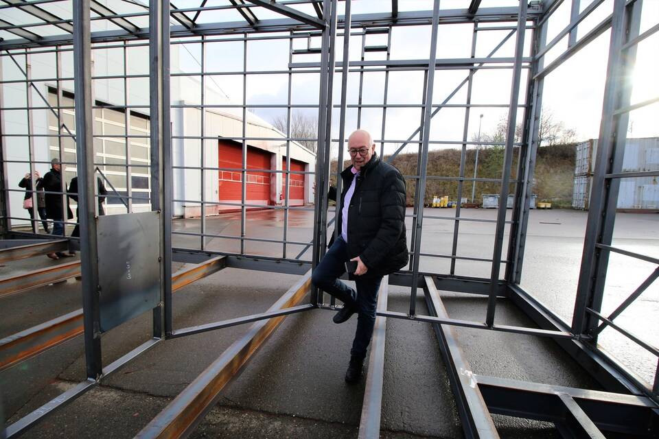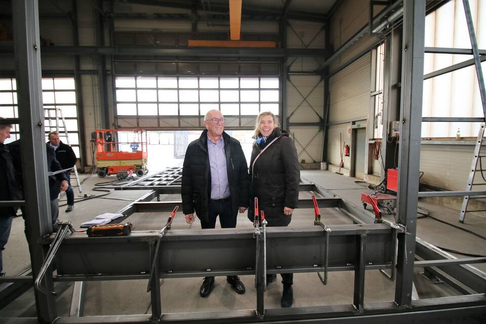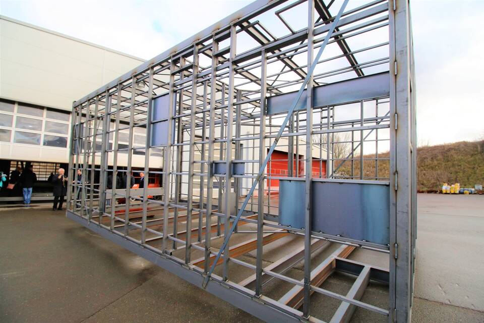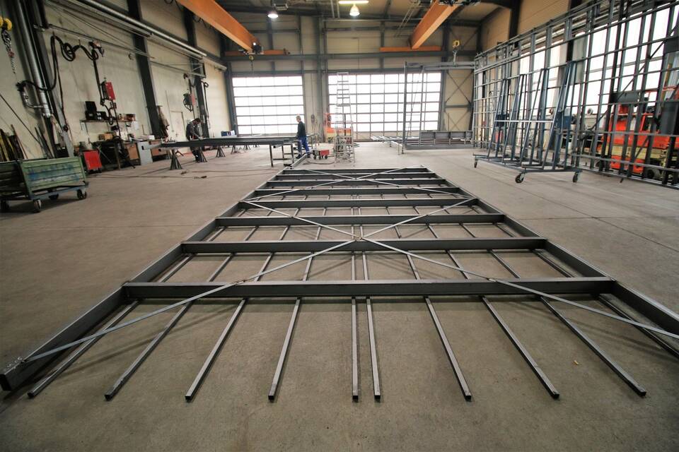 Was Cadolto unter der "Zukunft des Bauens" versteht, zeigt sich dann beim Rundgang durch die Betriebshallen, in denen die Hardheimer Raummodule in den unterschiedlichen Fertigungsstufen in Augenschein genommen werden können - vom Stahlbau bis zum Innenausbau. Los geht es mit Stahlständerbau. Dort wird sozusagen das Gerippe der künftigen Krankenhausräume gefertigt.