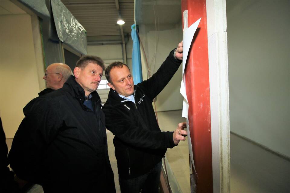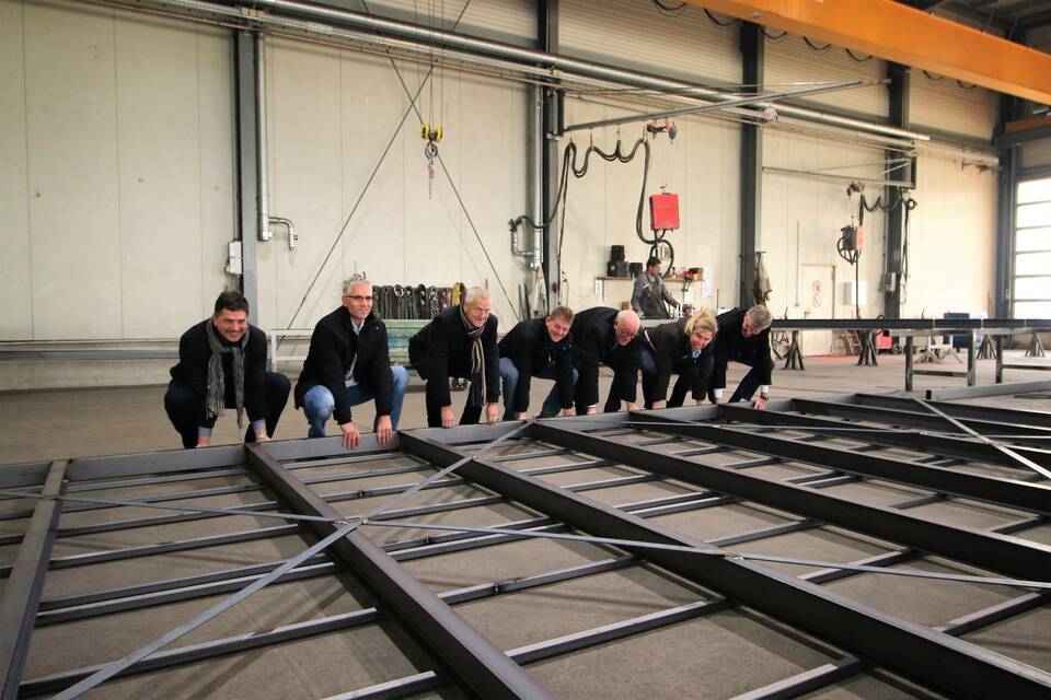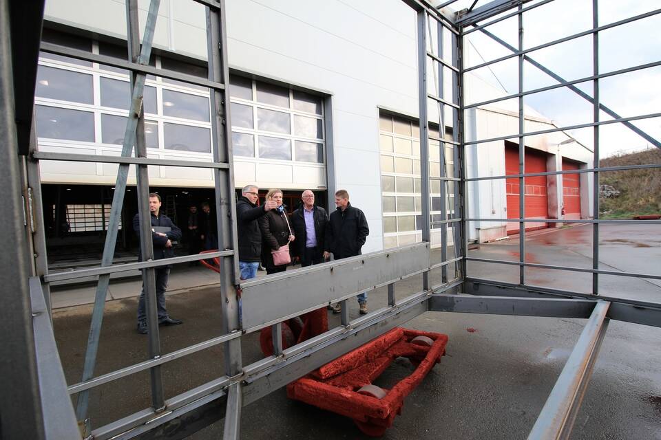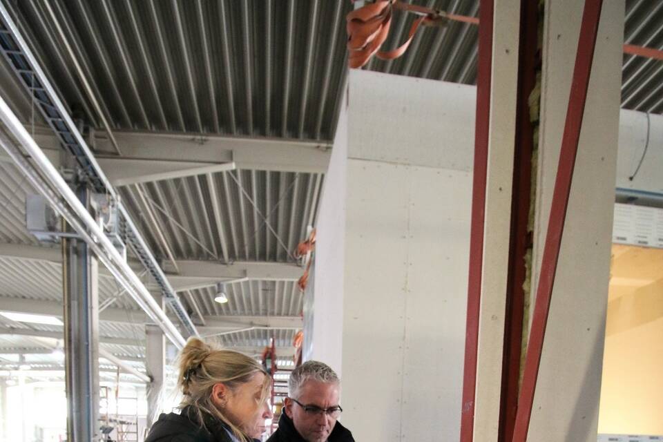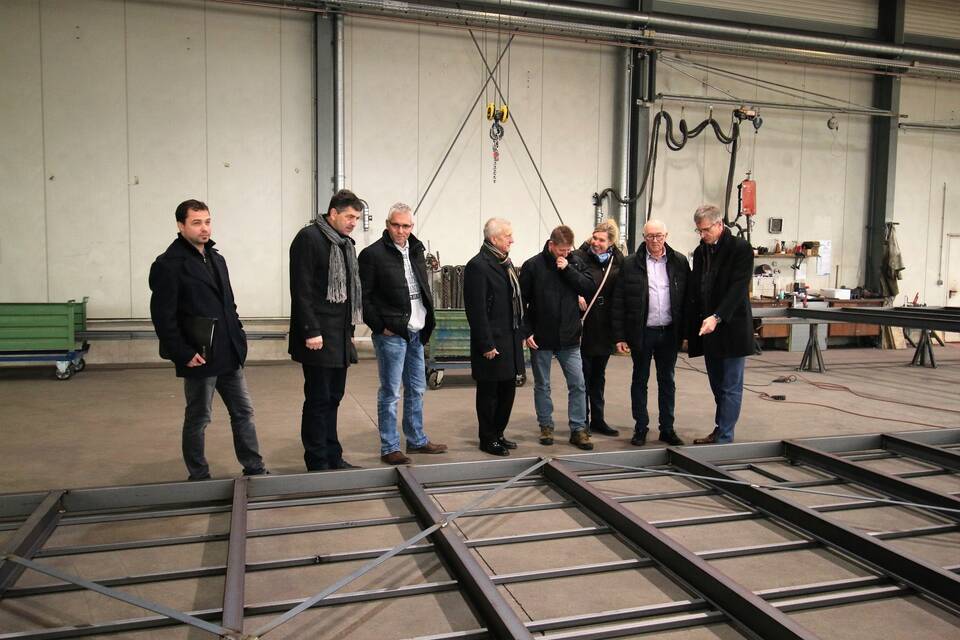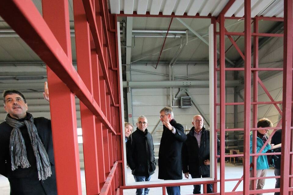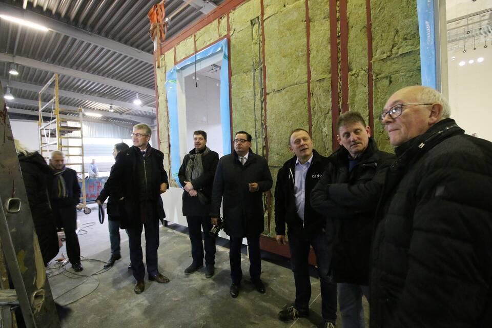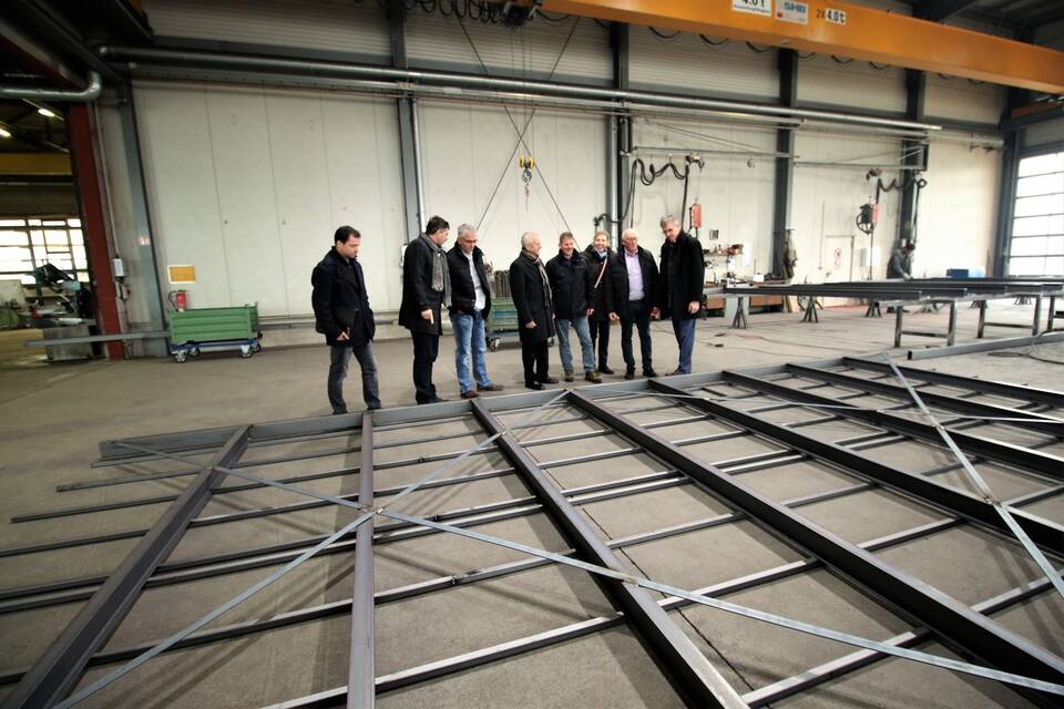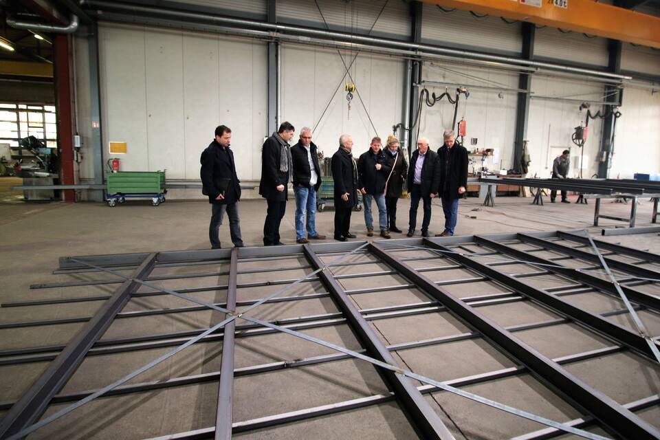 Eine Hardheimer Delegation überzeugte sich bei einem Besuch im Cadolto-Werk in Thüringen vom Fortgang der Arbeiten. Dort entstehen 25 Raummodule für die Erweiterung des Hardheimer Krankenhauses. Fotos: Rüdiger Busch
