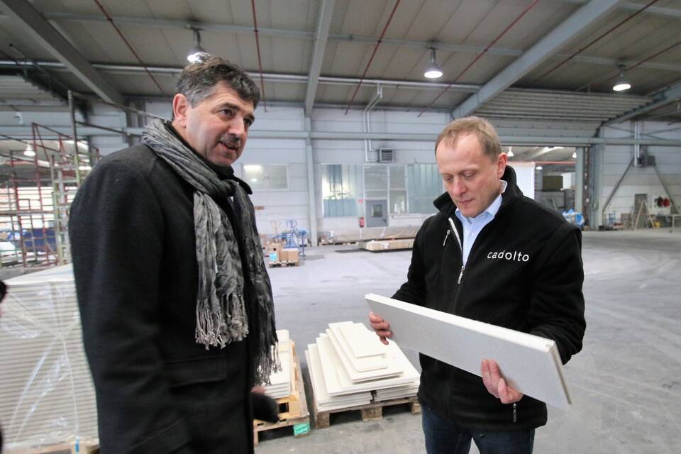 Neben Bürgermeister Rohm und Verwaltungsleiter Schön nahmen Pflegedienstleiterin Karina Paul, Technischer Leiter Peter Weniger, Fritz-Peter Schwarz als Vorsitzender des Fördervereins "Unser Krankenhaus" und Gemeinderat Klaus Kreßner an der Informationsfahrt teil. Empfangen wurde die Hardheimer Delegation von Cadolto-Geschäftsführer Henning Schrewe, Peter Scheifele (Leiter Unternehmenskommunikation), Projektleiter Thomas Hertel und Standortleiter Achim Siebert.
