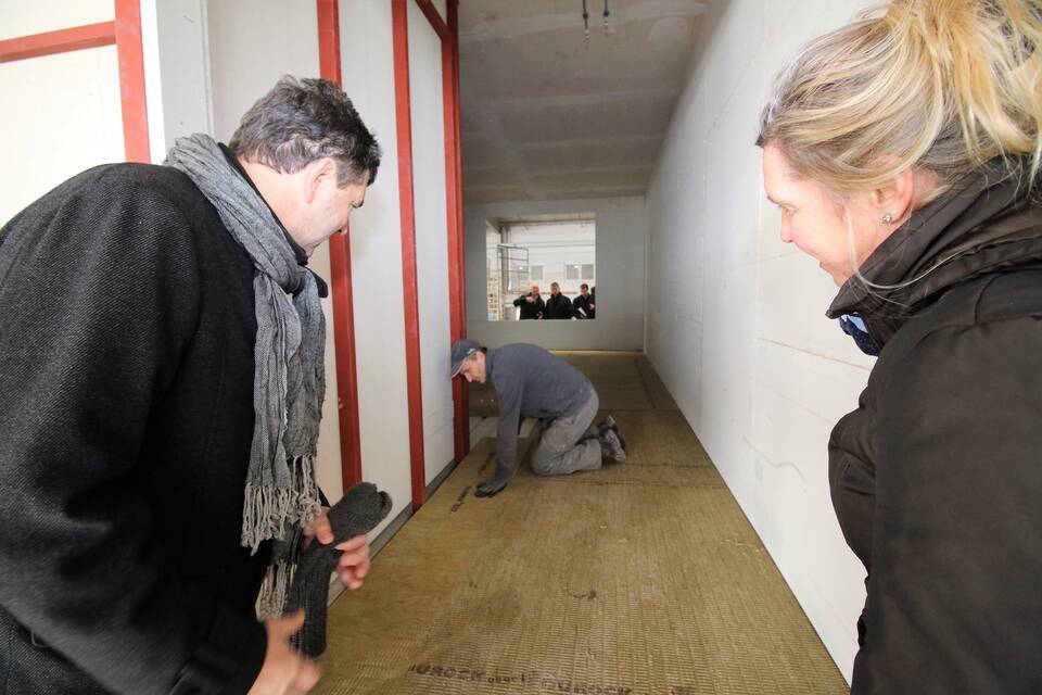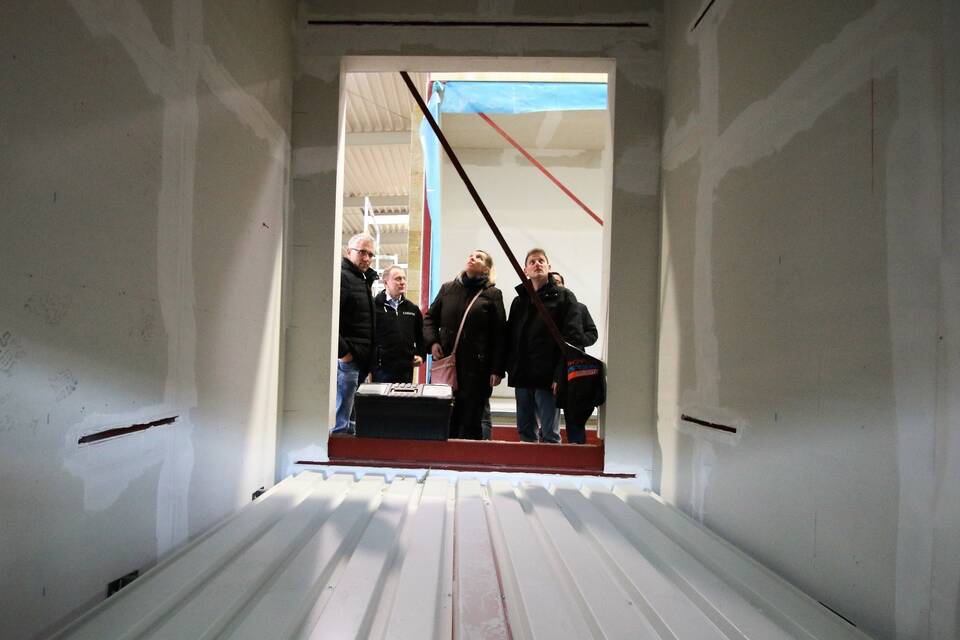"Es ist etwas ganz anderes, die Dimensionen der neuen Räume hier in der Halle zu sehen, wenn man bisher nur die Pläne kannte", stellt Technischer Leiter Peter Weniger fest. Insgesamt haben die beiden Anbauten eine Bruttogrundfläche von 888 Quadratmeter – aufgeteilt in 25 Module. Während das Bauvorhaben für die Hardheimer Delegation etwas ganz Besonderes ist, bedeutet es für die Fachleute von Cadolto Alltag. Auch der Anbau der Module an ein 110 Jahre altes Gebäude bringt sie nicht ins Schwitzen: "Es ist natürlich eine Herausforderung", räumt Projektleiter Hertel ein, "aber ganz bestimmt kein unüberwindbares Hindernis für uns." Kein Wunder, bei 730 bisher weltweit realisierten Projekten.