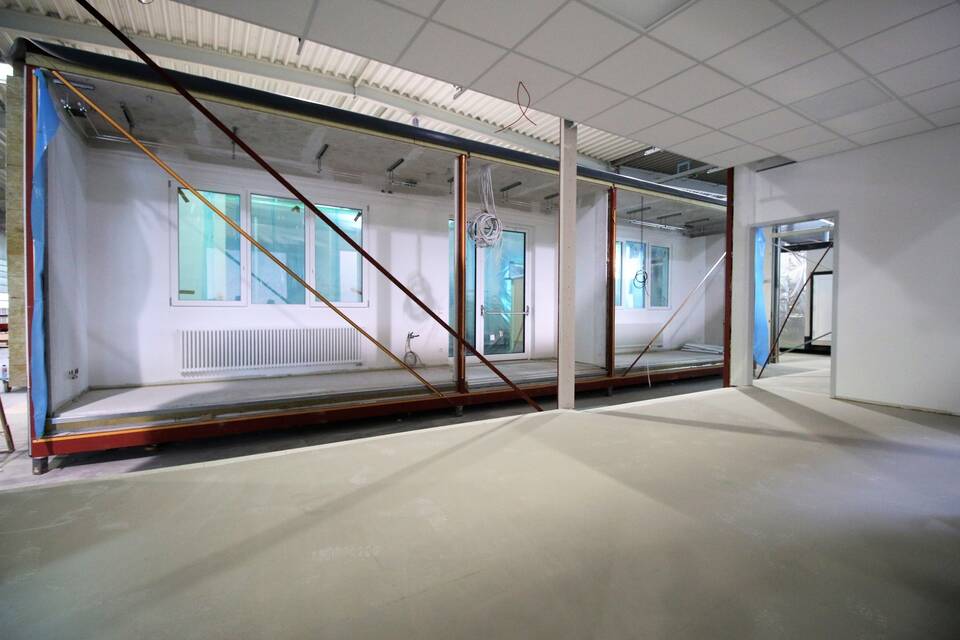 In der Produktion ist gerade ein Patientenzimmer. Gut zu erkennen ist bereits, wo künftig Dusche und Toilette ihren Platz finden. Die Ausstattung aller Bettenzimmer mit sanitären Anlagen - und damit die Verbesserung der Patientenunterbringung - ist bekanntlich das übergeordnete Ziel des gesamten Bauvorhabens.
