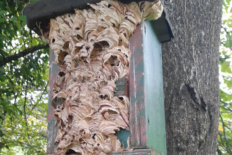 Hornissenvolk hat sich in einem Vogelnistkasten einquartiert