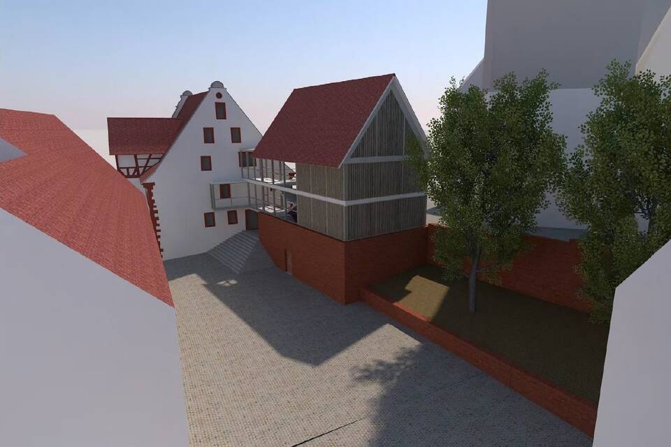 Der Anbau soll zwischen Basilika und ehemaliger "Rose" entstehen. Repro: Architektur Staib