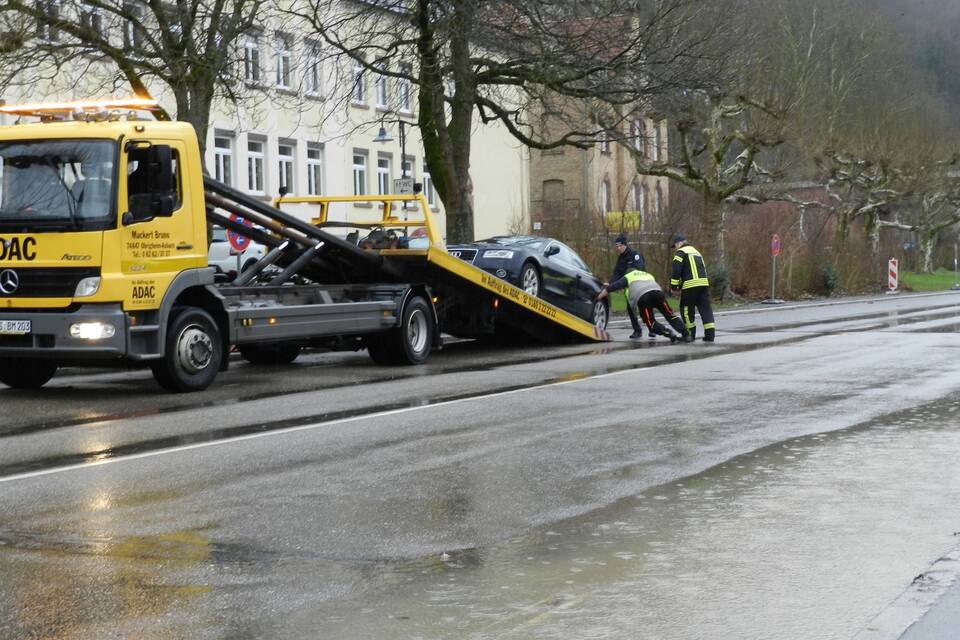 Der Neckar schwappte über Bundesstraße B 37 in Eberbach. Die Uferstraße in Hirschhorn bleibt am heutigen Montagvormittag wohl noch gesperrt.