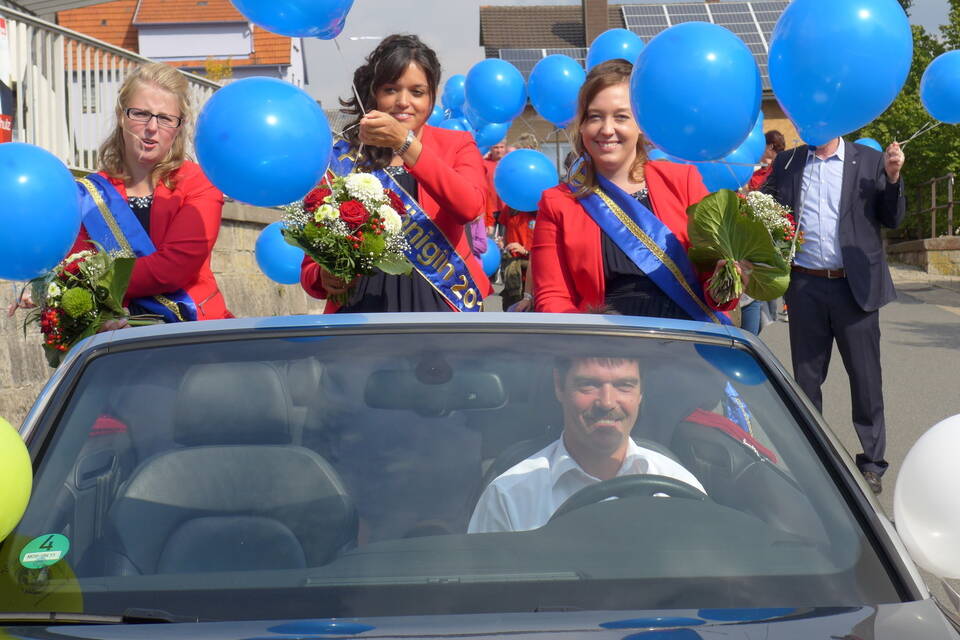 Festkönigin Michaela Greß und ihre beiden Festdamen Rebecca Eiermann und Ronja Weber nahmen ebenso am Festzug teil wie Bundestagsabgeordneter Alois Gerig.