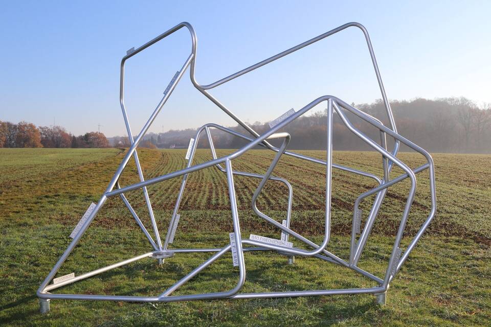 Die erste der neuen Skulpturen am Bauländer Kunst-Radweg steht. Sie wurde auf Gemarkung Rosenberg in Richtung Talmühle errichtet. Foto: Helmut Frodl