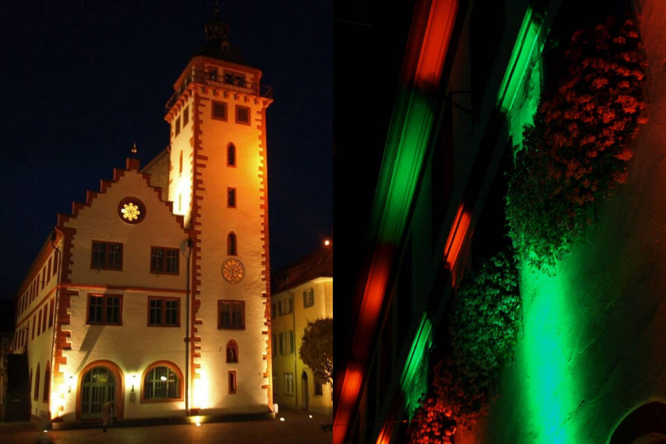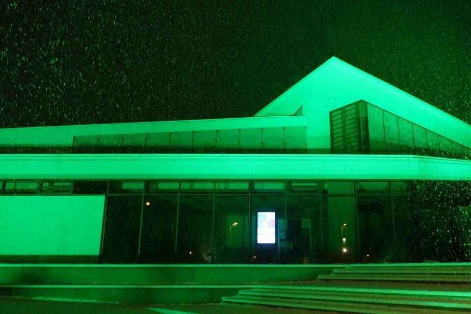 Frau Zürn, Frau Frisch, wofür genau steht die grüne Beleuchtung, die heute Abend an den Gebäuden zu sehen ist?