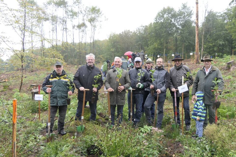 Und das, obwohl das Wetter eigentlich weniger zu Arbeiten unter freiem Himmel einlud: Dieser war nämlich wolkenverhangen, und bei herbstlichen Temperaturen fielen immer wieder Regentropfen. Umso bemerkenswerter, dass sich so viele Helfer einfanden, um "gemeinsam zum Spaten zu greifen und einen kleinen und bescheidenen, aber wirksamen Beitrag zum aktiven Klimaschutz zu leisten", wie Dr. Achim Brötel lobend hervorhob. Denn zu diesem Schutz brauche man mehr als Worte, vielmehr bedürfe es einer tatkräftigen Unterstützung. "Beispiele wie dieses sind einfach wichtig - für die Waldbesitzer, aber auch für die Bevölkerung."