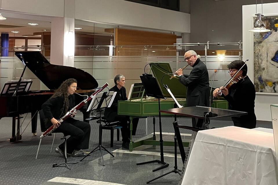 Für das Musikforum der Lehrkräfte der Musikschule Mosbach öffnet die Sparkasse ihre Räume und die Musiklehrer ließen nur so die Funken fliegen.