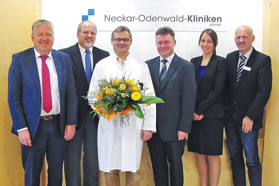 Neuer Mann für die Neuausrichtung: Am Standort Mosbach der Neckar-Odenwald-Kliniken wurde Dr. Fritz Karl Matzkies (3.v.l.) als neuer Chefarzt eingeführt.