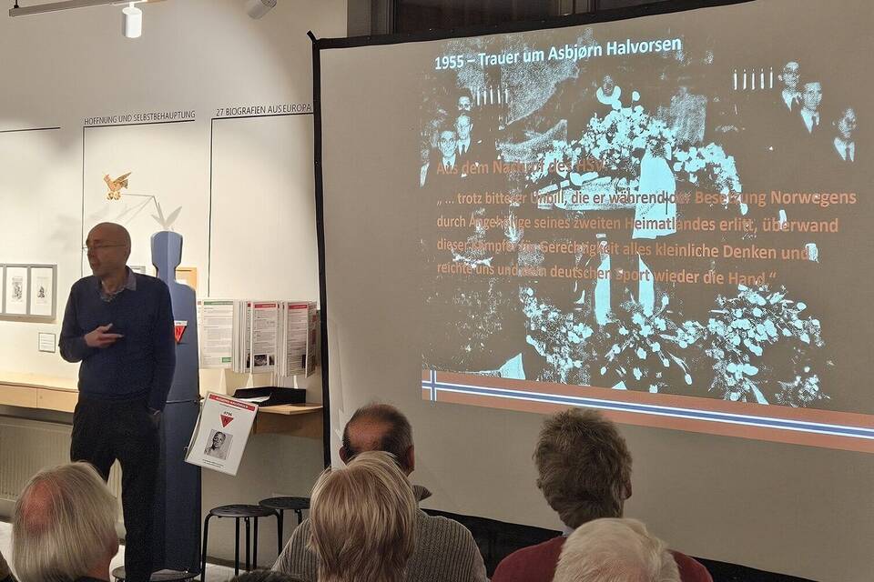 Jürgen Kowalewski stellte in der KZ-Gedenkstätte seine Biografie von Asbjørn Halvorsen vor.