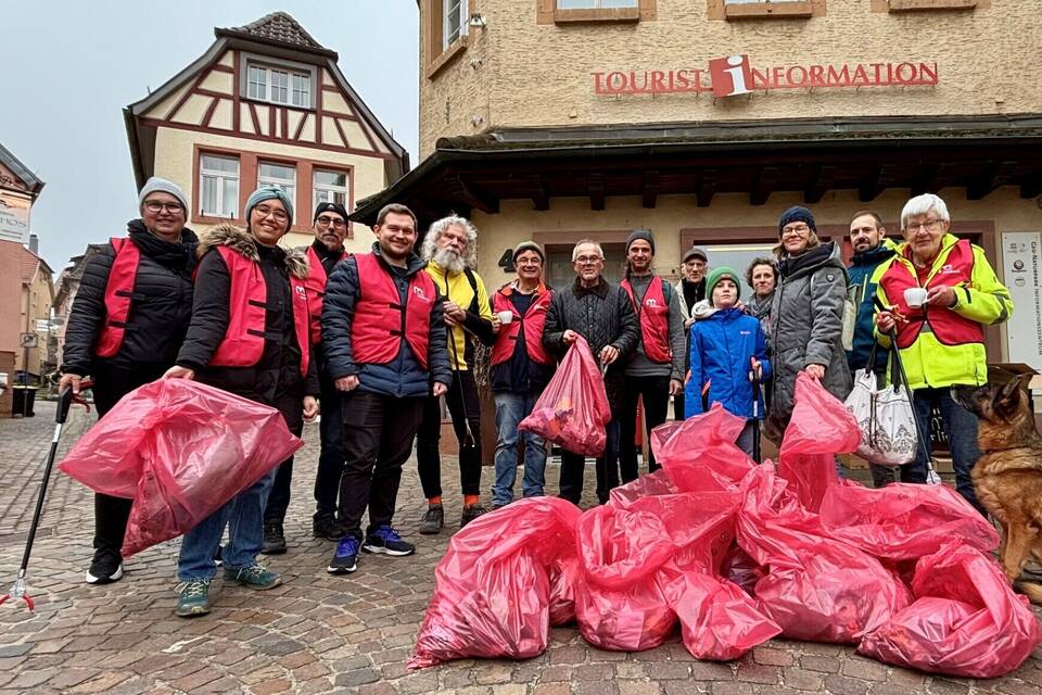 Die stattliche Gruppe, die nun am Samstagmorgen in der Mosbacher Altstadt mit genannter Ausrüstung aktiv war, hatte