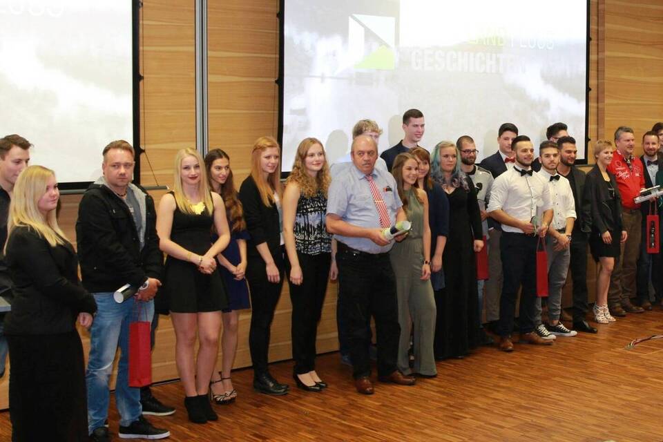 Starke Premiere: Sieben Filmteams aus dem Studiengang Onlinemedien (im Bild mit Protagonisten) stellten im Audimax der Dualen Hochschule Mosbach die neue Staffel der "Stadt-Land-Fluss-Geschichten" vor. Entstanden sind mitunter bewegende Kurzfilm-Porträts.