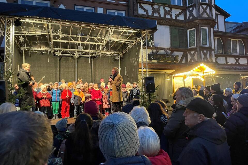 Mosbach. (stk) "Zündet ein Lichtlein an", forderten die Kinder des Jekiss-Chores (Leitung Katrin Glenz) zur Eröffnung des Weihnachtsmarktes in Mosbach am Freitagabend. Mussten sie aber gar nicht,