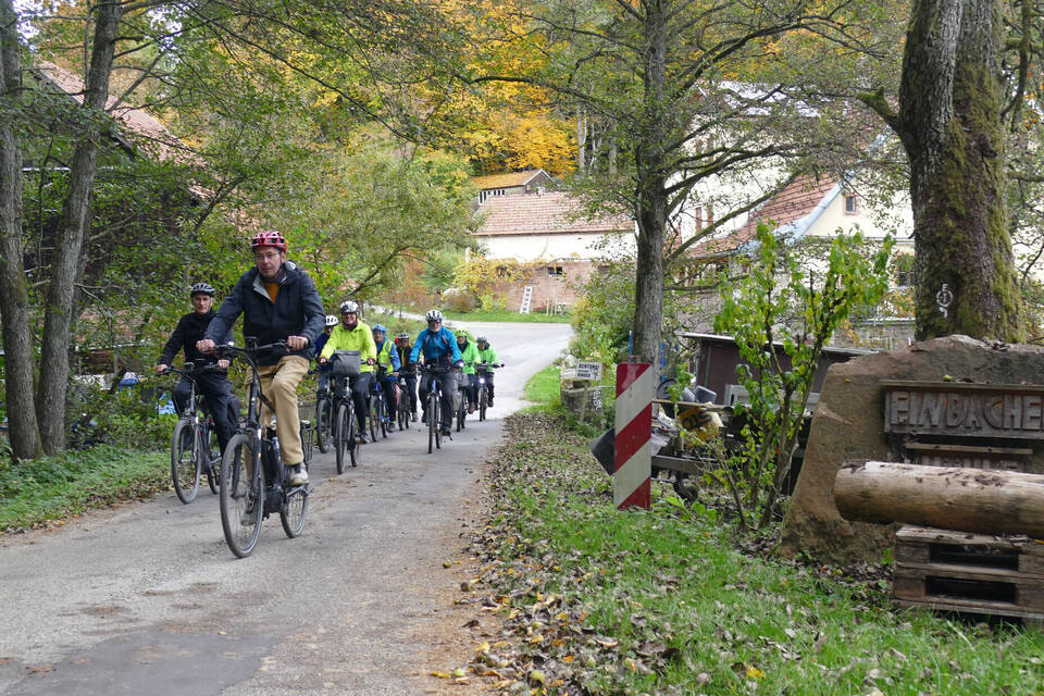 Neckar-Odenwald-Kreis. Unter den Reifen raschelte das Herbstlaub, knackten Bucheckern und Eicheln, als sich ein Dutzend Radfahrerinnen und Radfahrer von der Mosbacher Bachmühle aufmachte, entlang der Elz deren Mühlen zu besuchen. Ausgeschrieben als "Mühlentour", nimmt dieses Angebot der Mosbacher Tourist Info einen Faden auf, der einerseits schon mal